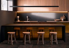 ตัวอย่าง ปูพรมห้องครัว ปูด้วยพรมแผ่น รุ่น Over the Ocean รหัส Ice Floe OC 01 – Rockaway OC 09 และ Golden Reef OC 11